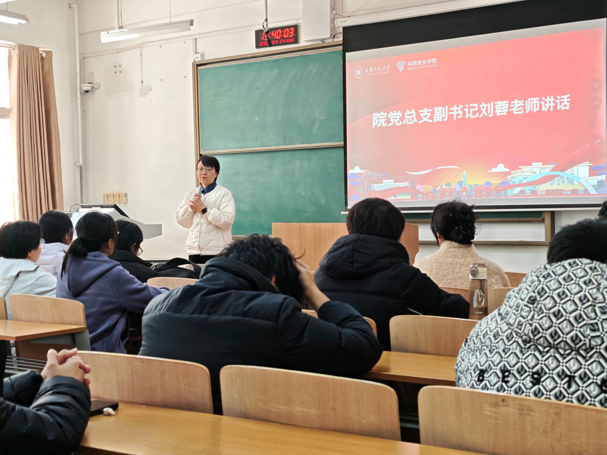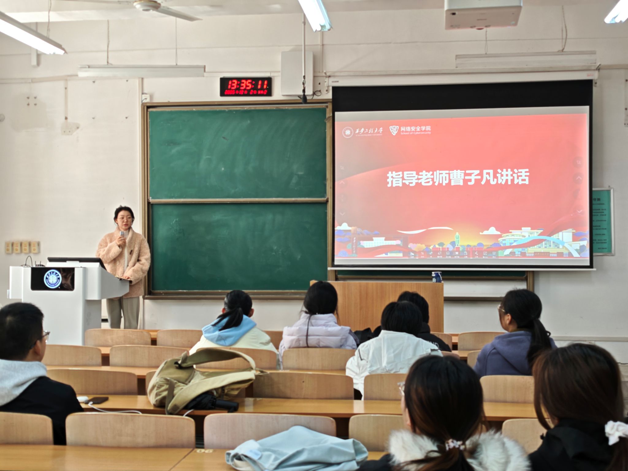 张宇轩代表社团对各位老师同学的到来表示热烈欢迎,他简要介绍了社团成立的背景、章程、管理制度,他强调,网安e盾社始终以“普及网络安全知识、提升实战技能、服务网络安全”为宗旨,致力于打造一个学习交流、实践创新的平台,他还围绕“初识CTF”入门培训活动进行宣讲。曹子凡对社团成立表示祝贺,并对社团未来的发展提出明确方向与期许。她指出,在数字时代背景下,网络安全已成为国家安全与发展的关键支撑,希望社团成员能够立足专业、面向未来,充分利用社团搭建的学习与实践平台,持续提升实战能力与创新素养。刘蓉在总结讲话中指出,没有网络安全就没有国家安全,当前网络空间成为大国博弈关键战场,人才是守护“第五疆域”的核心力量,她鼓励同学们在社团活动中培养学术能力、探索专业方向,实现个人发展与集体进步的双赢。